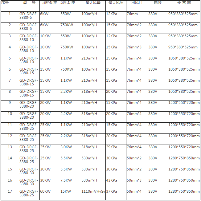 另外,熱風機還對通風機進風口、電機設置了超溫保護回路及對總電路設置了急剎摯開關,更進一步完善對設備的保護。高壓型熱風機由鼓風機、加熱器、控制電路三大部分組成。非磁性鎳鉻絲通電加熱空氣作熱風源,干凈衛生,符合環保。設有防干燒折斷功能。巧妙風洞設計,空氣從螺旋電熱絲內/外側均勻通過,熱交換近100%,風壓損失少,流量少。