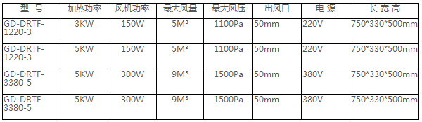 便攜式熱風(fēng)機(jī)選型表